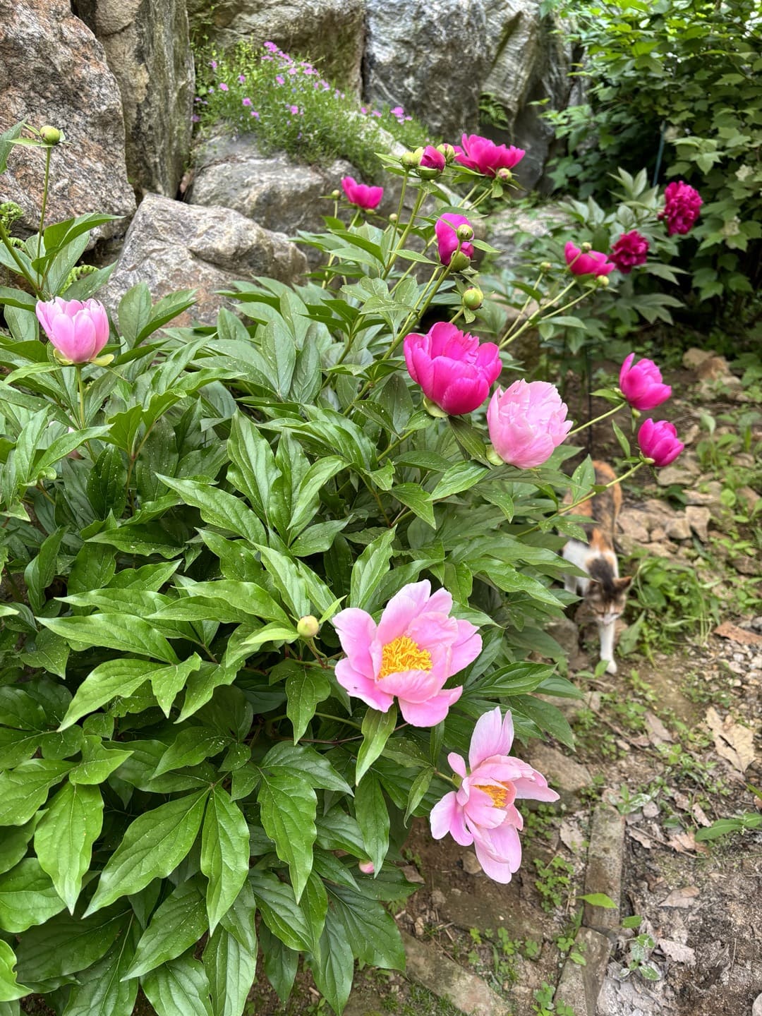 거대 도시에서 시골로의 전환은 일상생활의 속도에 눈에 띄는 변화를 가져왔습니다. 한 번의 약속에서 다가올 약속으로, 차분하고 평온한 느낌으로 대신 달려들던 시절은 이미 지나갔습니다. 저는 몇 시간 동안 마당에서 꽃을 가꾸고 평화로운 환경을 즐기는 저 자신을 설정했습니다. 물론 풀을멘다던지, 돌들을 이동시키며 전에는 경험해보지 못하는 노동을 경험하게 되었습니다. 꽃이 피는 것을 보는 행위는 조심스러운 경험이 되었고, 저는 꽃이 펼쳐지면서 매 순간을 감속시키고 음미할 수 있었습니다. 특히 작약꽃은 저에게 긴 기다림을 갖게 하였습니다. 꽃 봉오리가 맺힌 채 곧 피겠구나 했지만 오랜 시간을 '꽃이 과연 피기는 할까'라는 생각을 할 때까지 기다리게 했습니다. 개미들은 작약꽃에 꿀이라도 발라져 있는지 꼭 입 다물고 있는 단단한 꽃봉오리에 줄줄이 붙어있다.