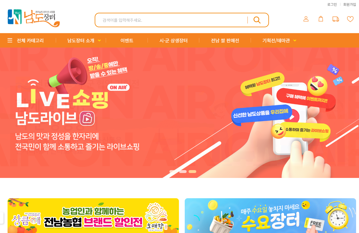 그냥 물건만 파는 쇼핑몰이 아니라는 게 남도장터의 매력인 것 같아요. 실시간 라이브 방송으로 제품들을 직접 소개하고, 다양한 기획전으로 소비자랑 소통하는 쇼핑몰입니다.