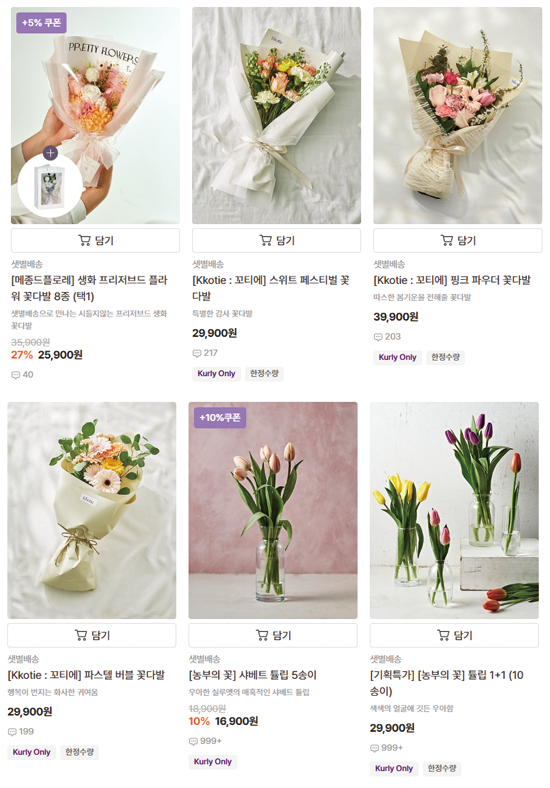 특별한 날을 위한 꽃 선물을 깜빡하셨다면 걱정하지 마세요! 샛별배송 서비스를 이용하면 밤 11시 이전 주문 시 수도권과 충청 지역에는 익일 아침 7시 전, 그 외 지역에는 아침 8시 전에 꽃이 도착합니다. 마켓컬리 첫 구매 고객이라면 즉시 1만 원 할인 혜택도 받을 수 있습니다.