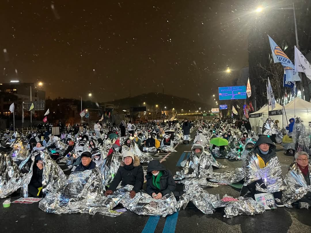 최근 한남동 대통령 관저 앞에서 열린 집회에서 참가자들이 추위를 막기 위해 사용한 은색 보온 담요가 화제가 되었다. 이 우주 기술은 시위자들에게 새로운 별명을 부여했으며, 물리학자 김상욱 교수는 이를 '우주 전사'라고 칭하며 그 과학적 의미를 설명했다. 은박담요를 둘러 쓴 시위자들의 모습이 초콜릿 키세스와 닮아서 키세스단이라고도 표현한다.