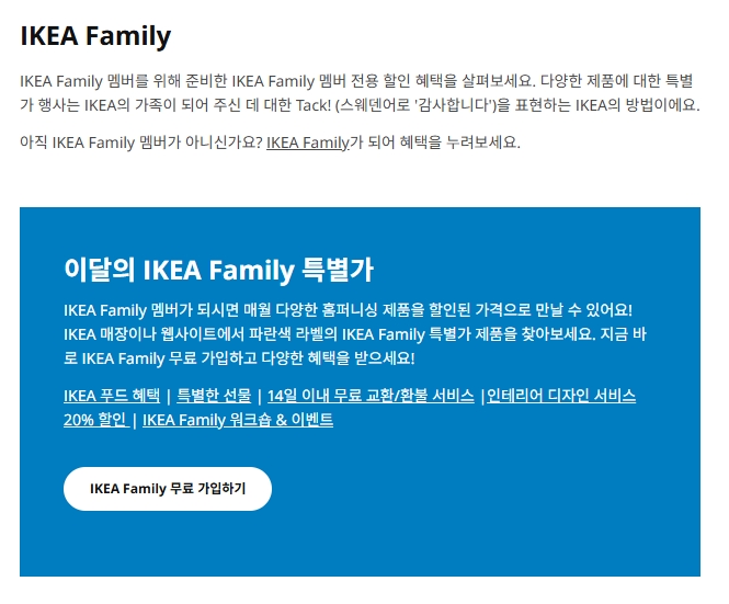 이케아 패밀리 멤버 가입을 하면, 패밀리만이 누릴 수 있는 할인을 경험할 수 있다.